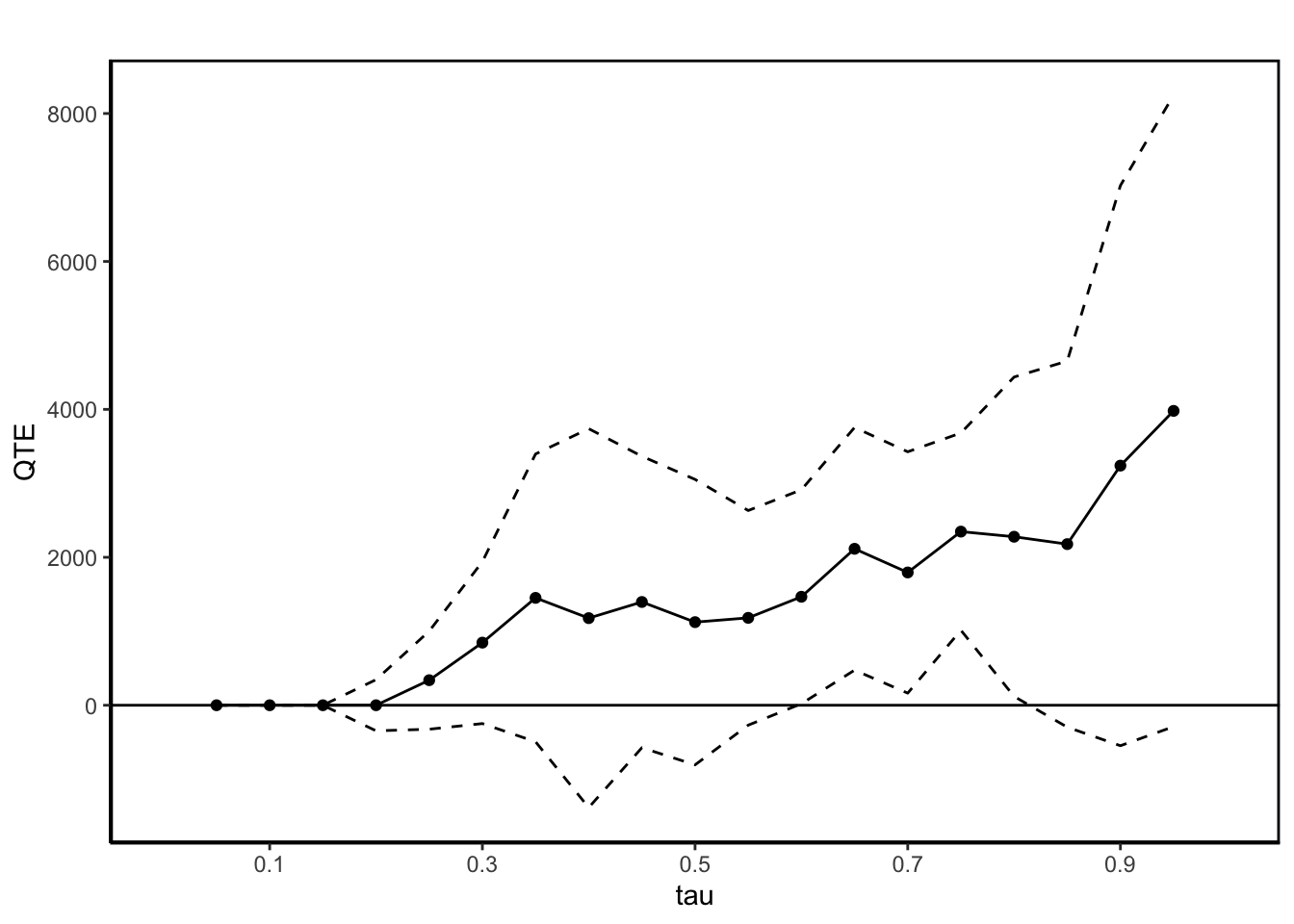 The objective of this workbook is to work through estimation of quantile treatment effects using the Lalonde experimental and observational data.