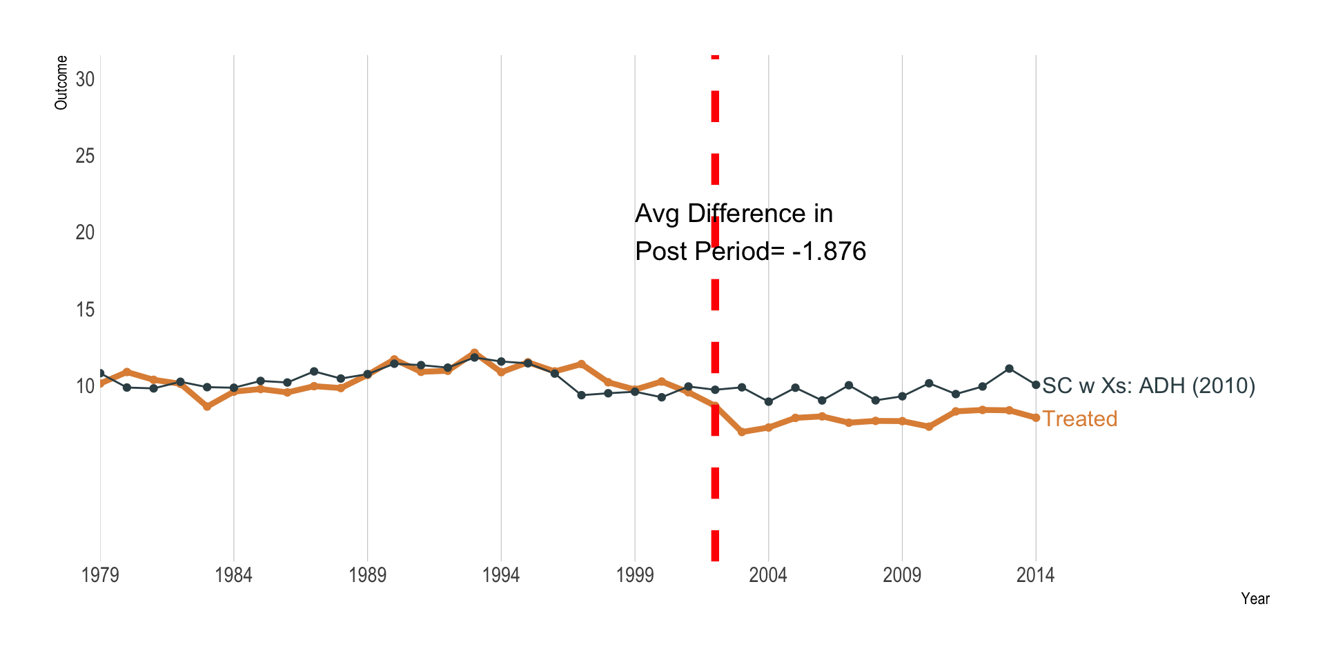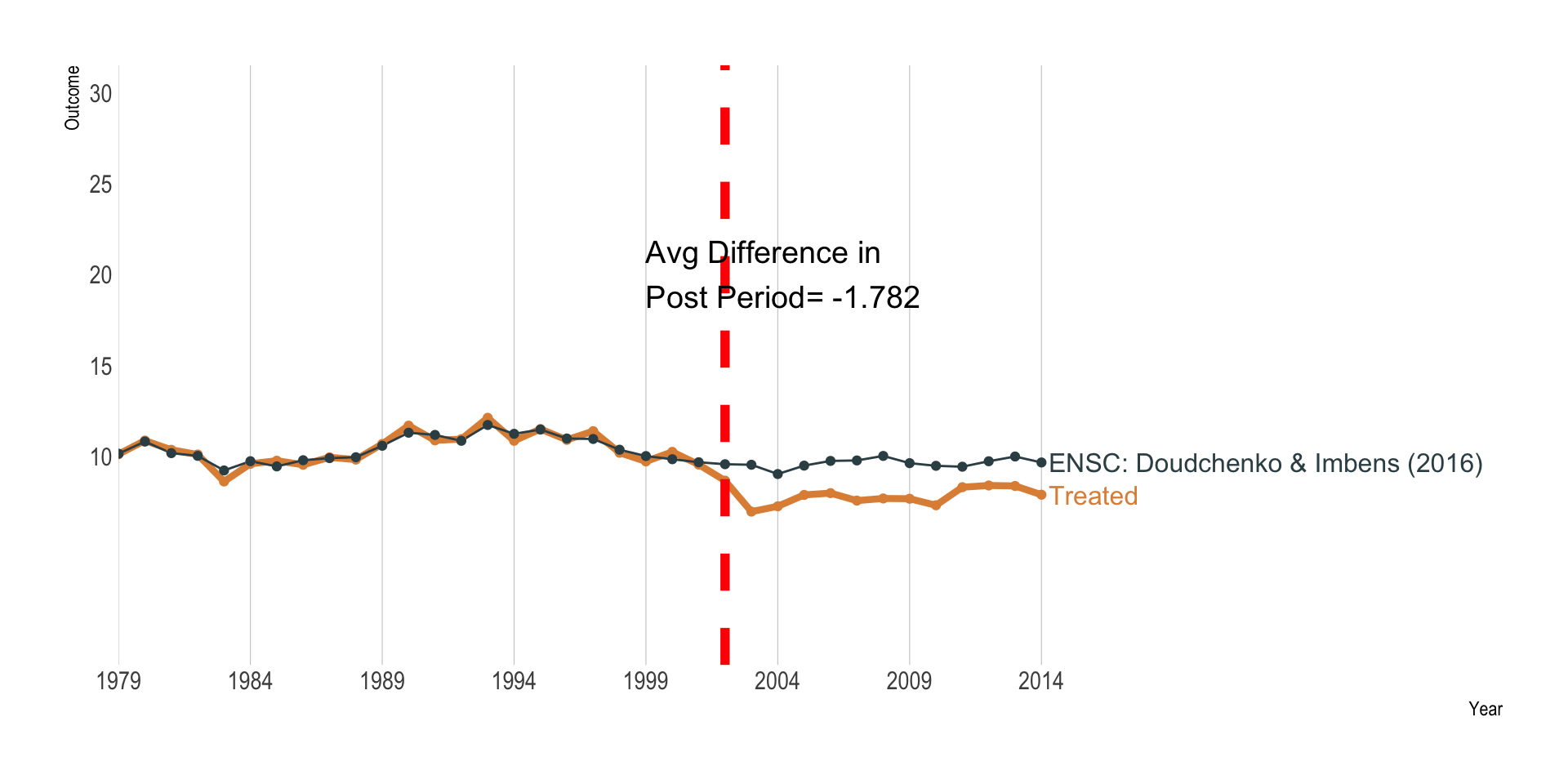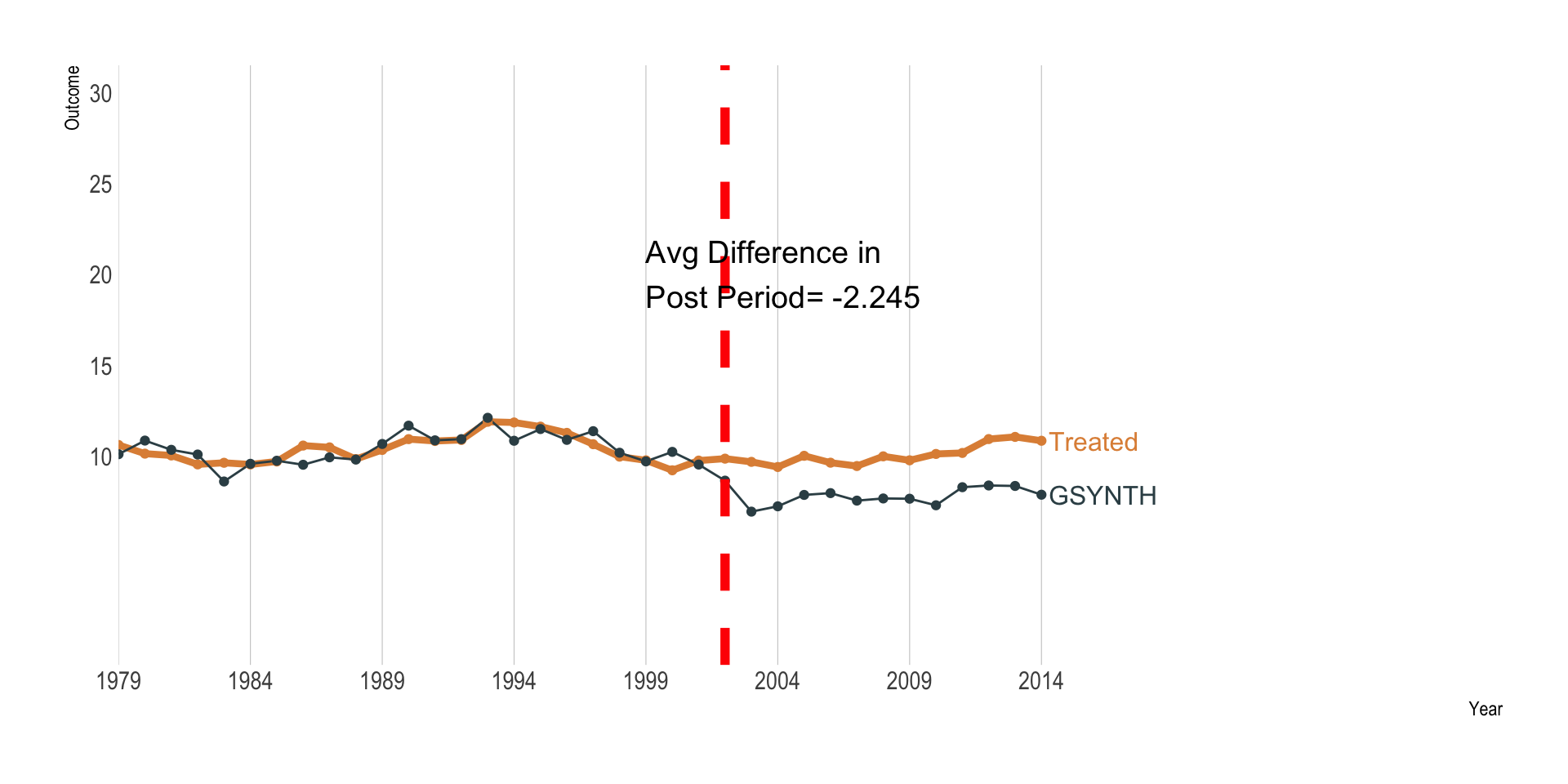 - This counterfactual stands in as a “synthetic” treated unit that traces out what would have happened to the treatment unit had it never been treated.