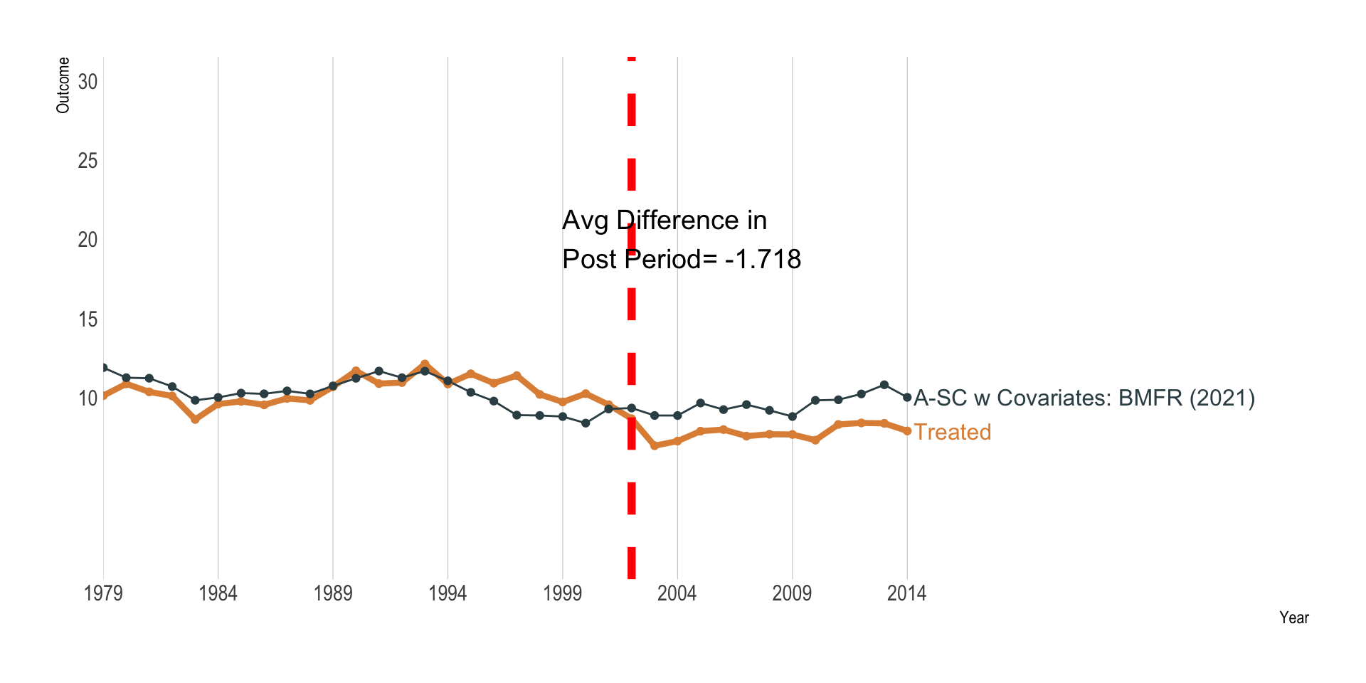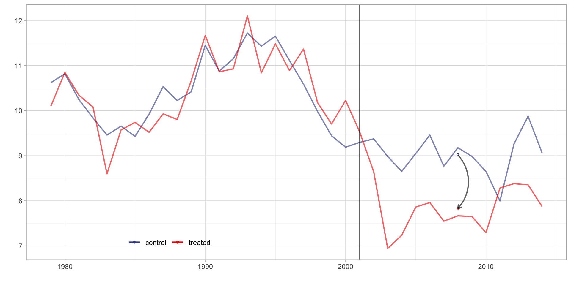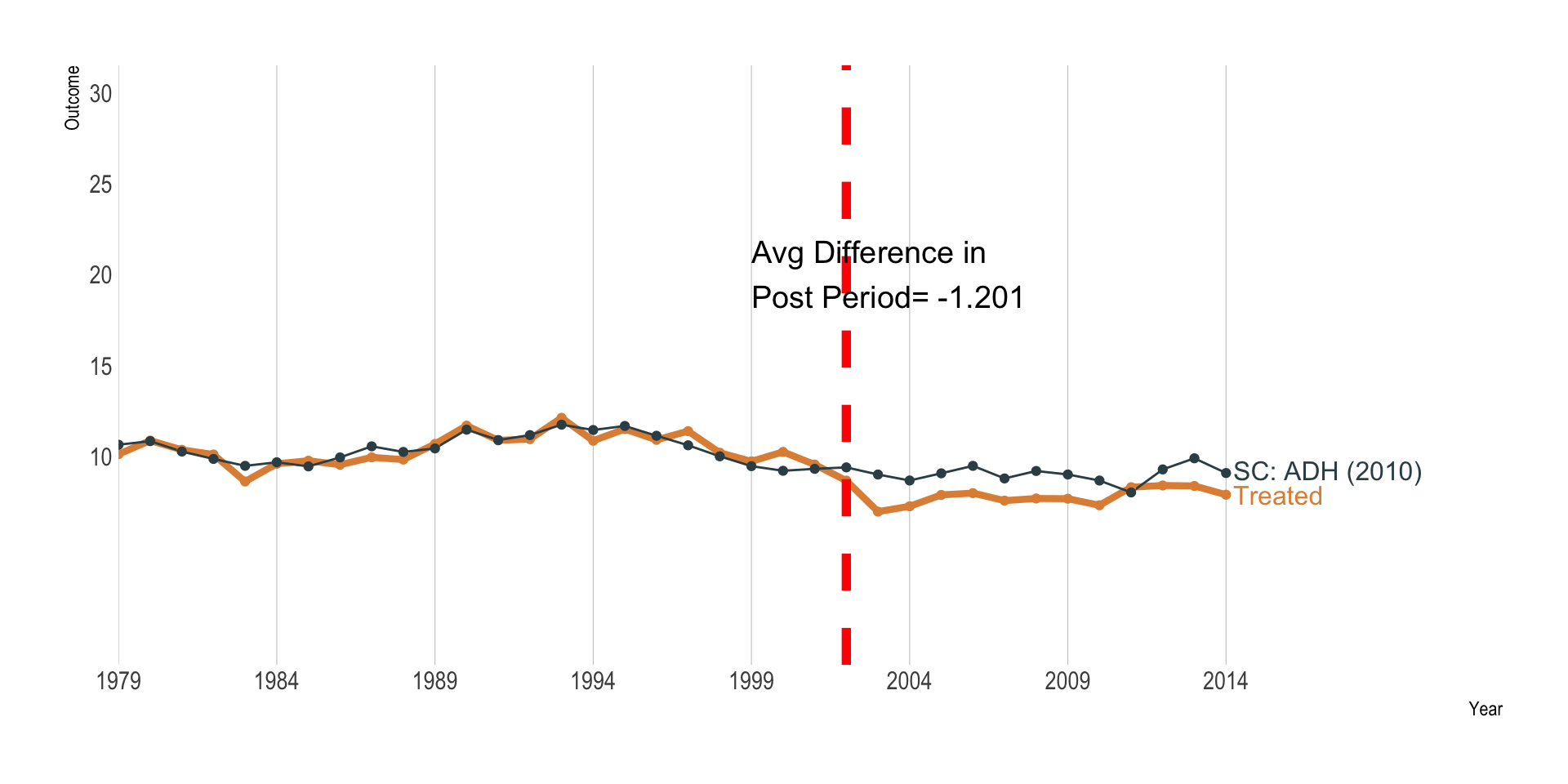 - This counterfactual stands in as a “synthetic” treated unit that traces out what would have happened to the treatment unit had it never been treated.