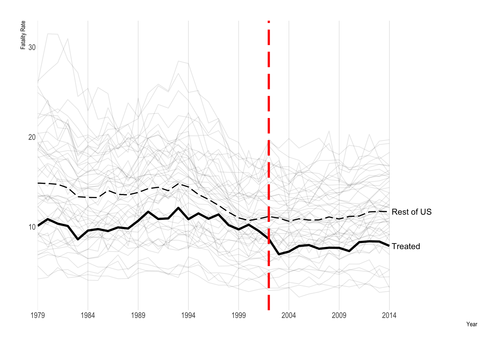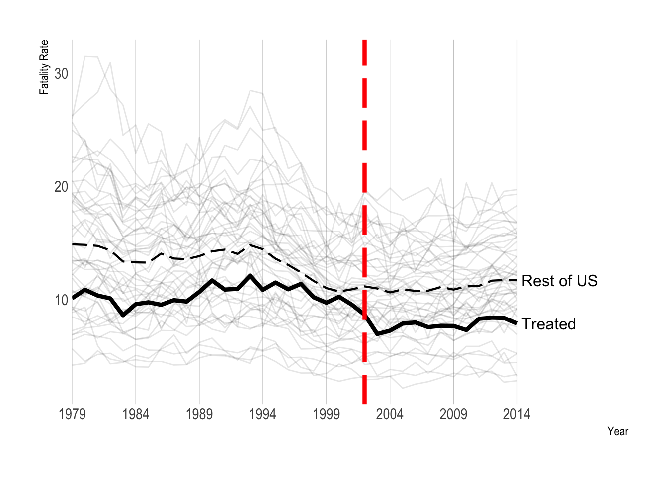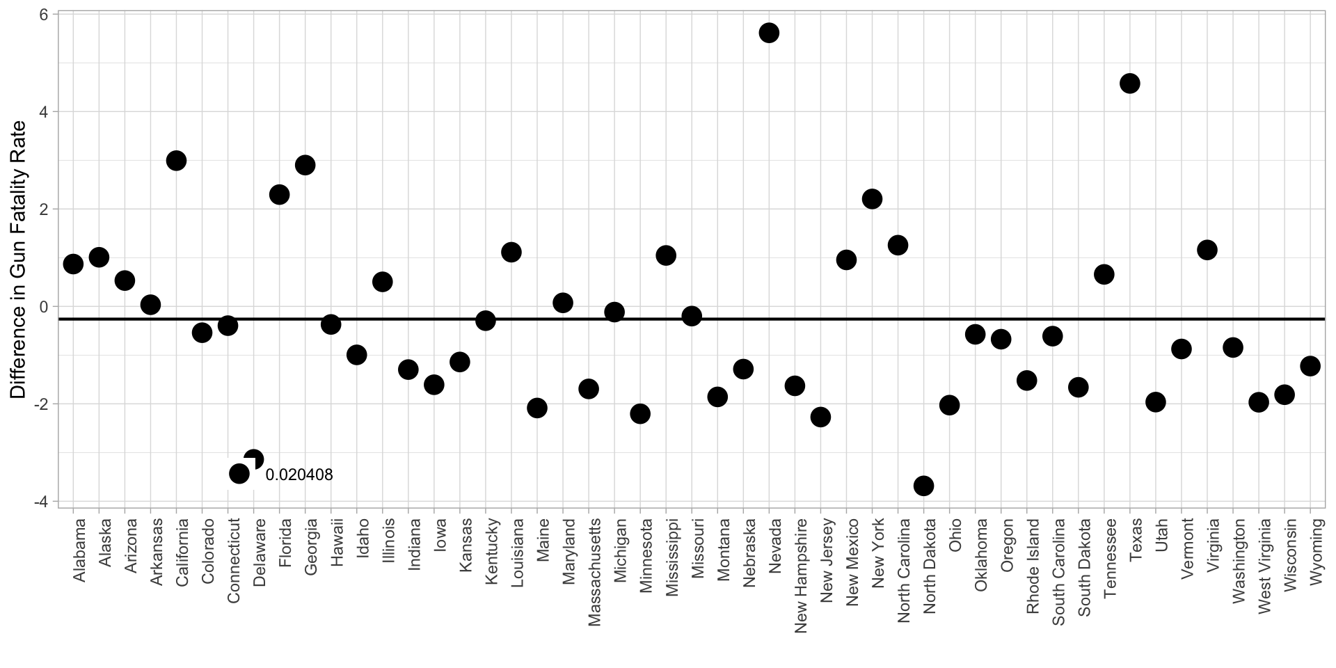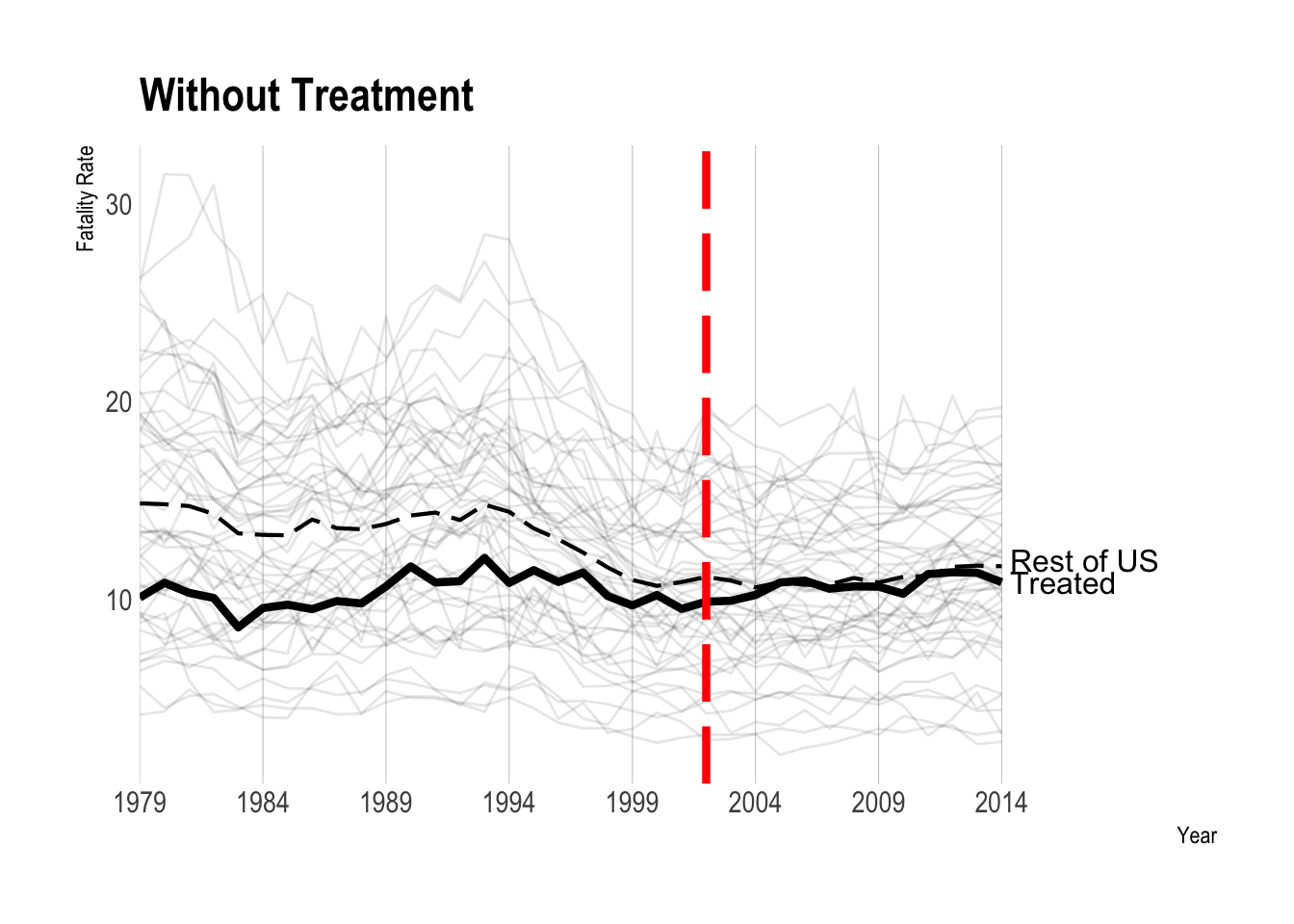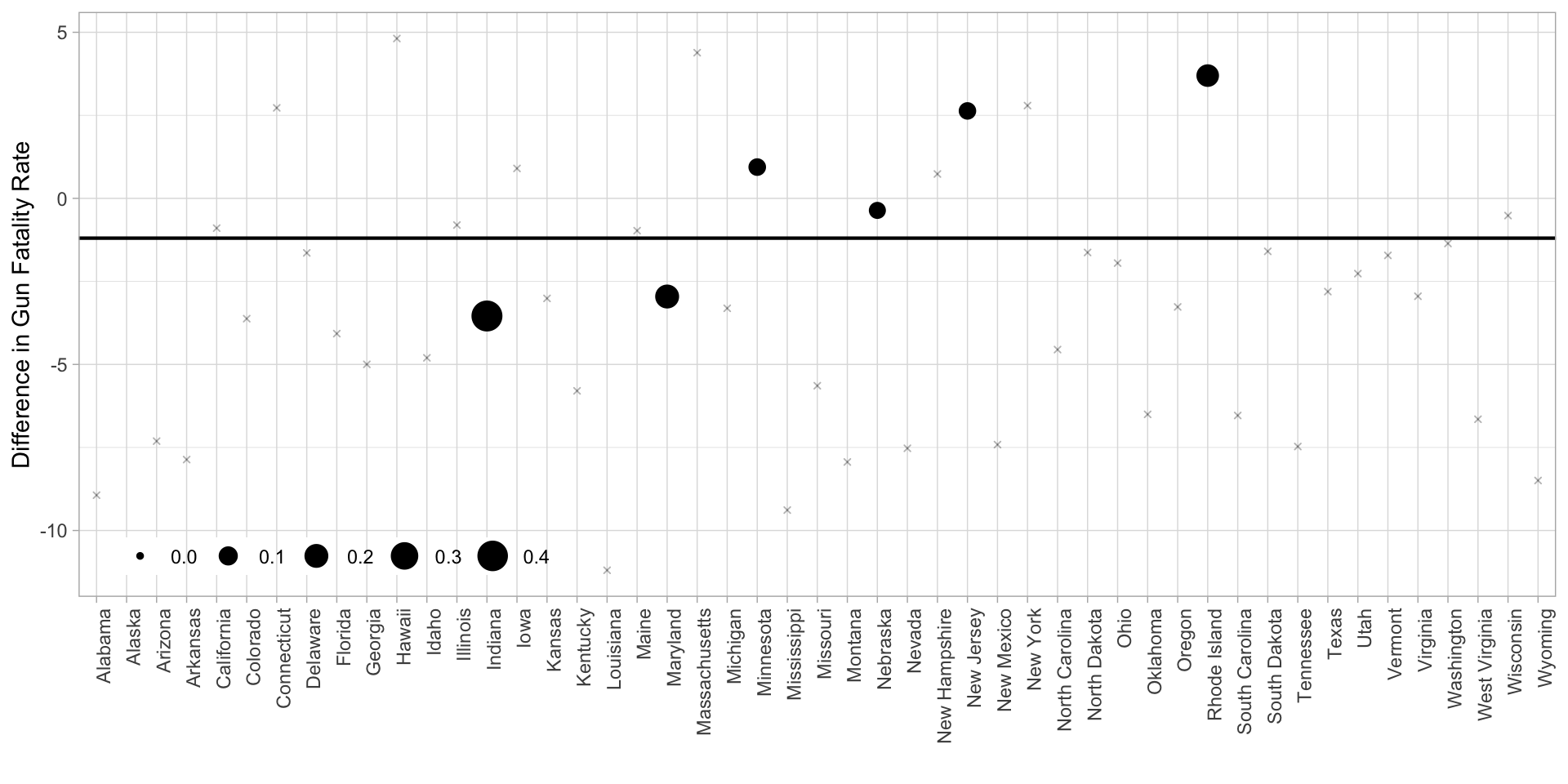 - Hypothetical gun law passed in a single state (Pennsylvania) in 2002.