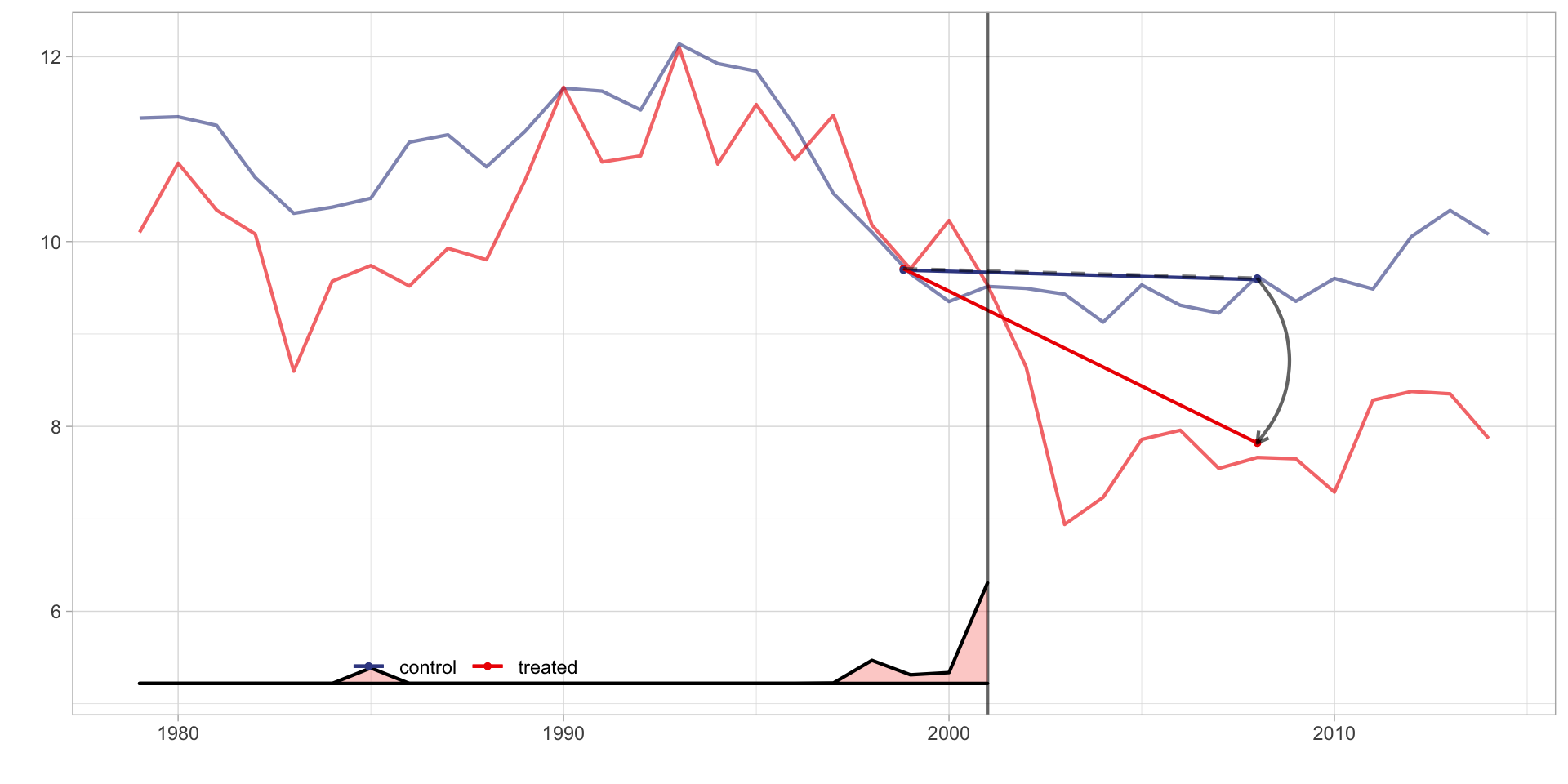 - Rules out the possibility that the outcome for the treated unit is systematically different, by a constant amount, than the other units.