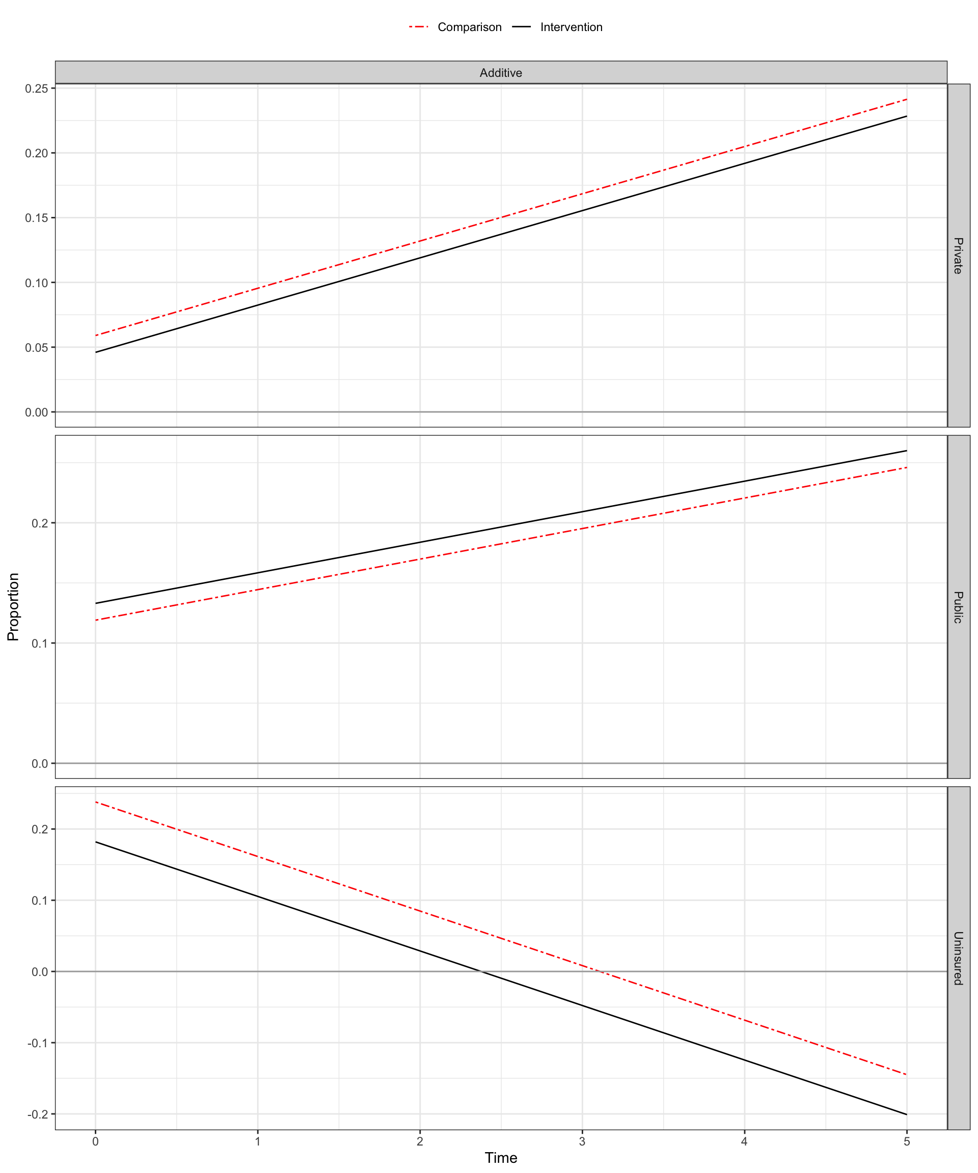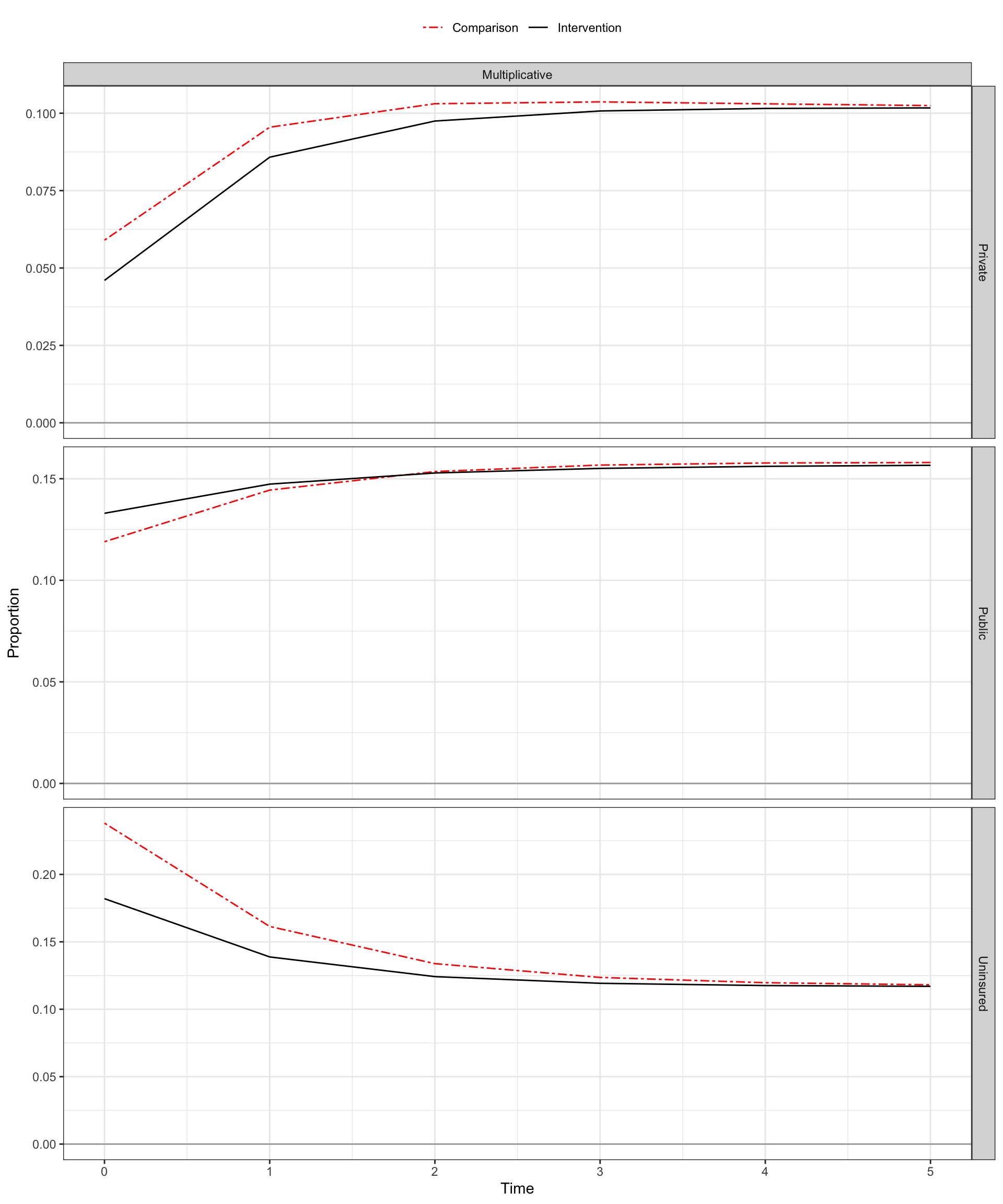 | Summary of Marginal Effect Point Estimates Using Regression-Based Transitions Estimator | ||||||
