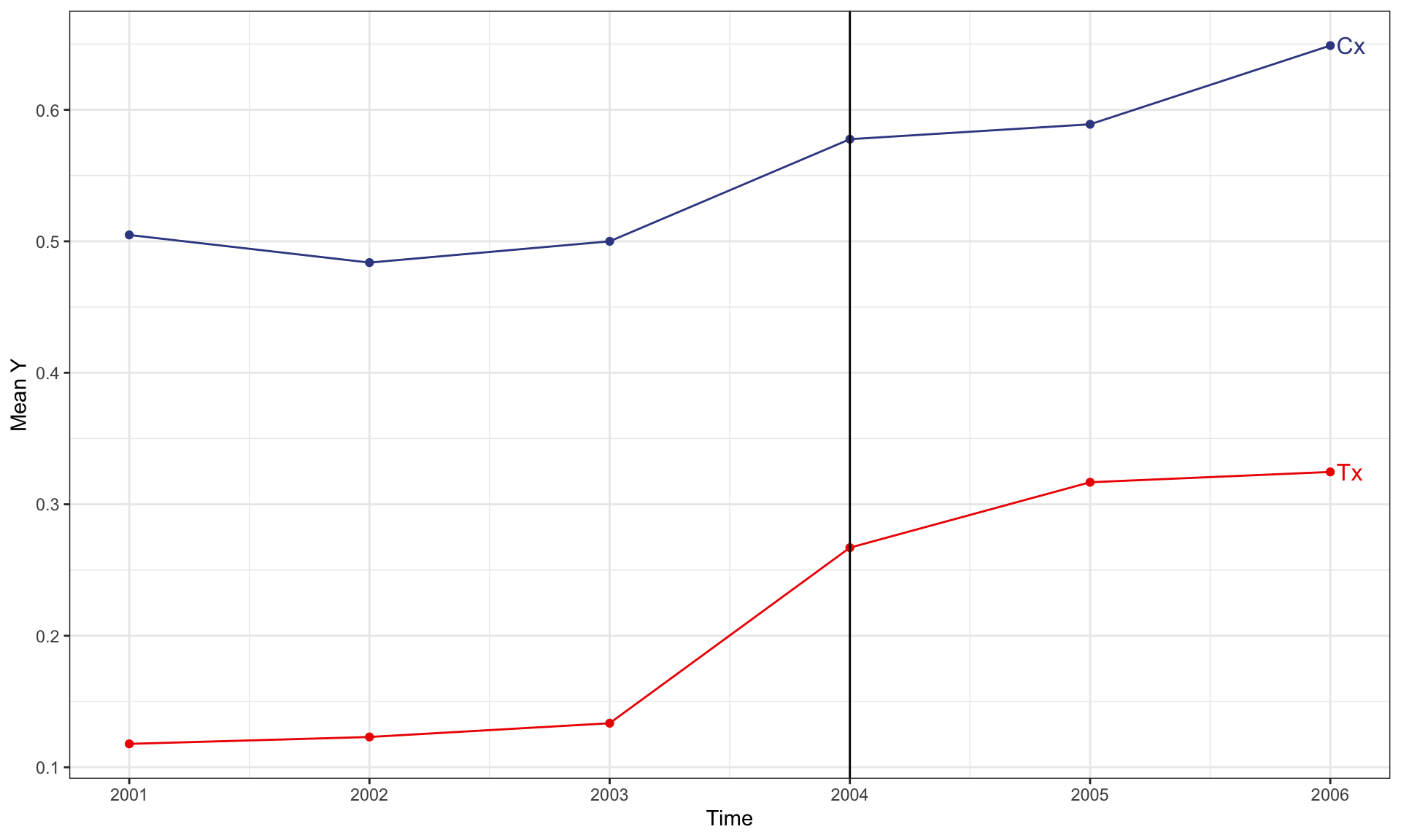 Demeaned covariate (x - mean(x|year>=tx_year)) |