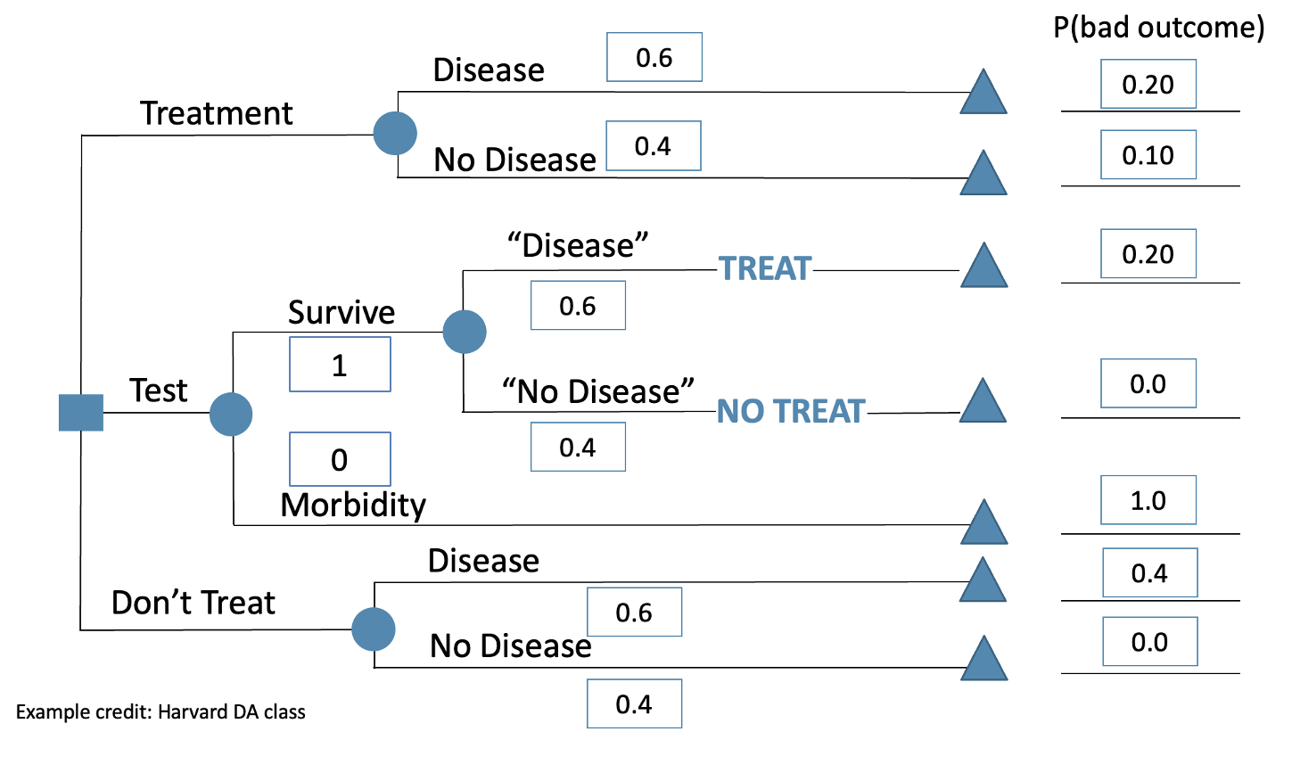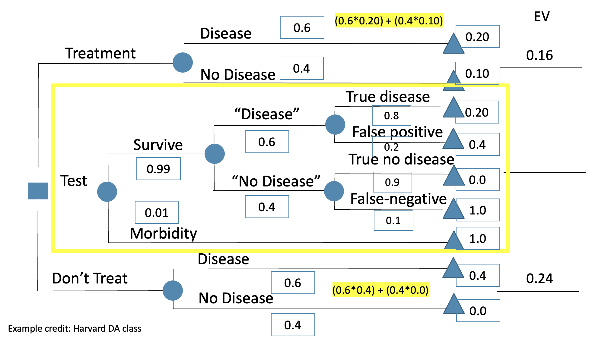 Cuando la prueba es imperfecta, probar sigue siendo la mejor estrategia (en este caso, cuanto menor sea el VE, mejor, ya que nuestros valores de resultado son la probabilidad de un mal resultado), pero no por mucho: