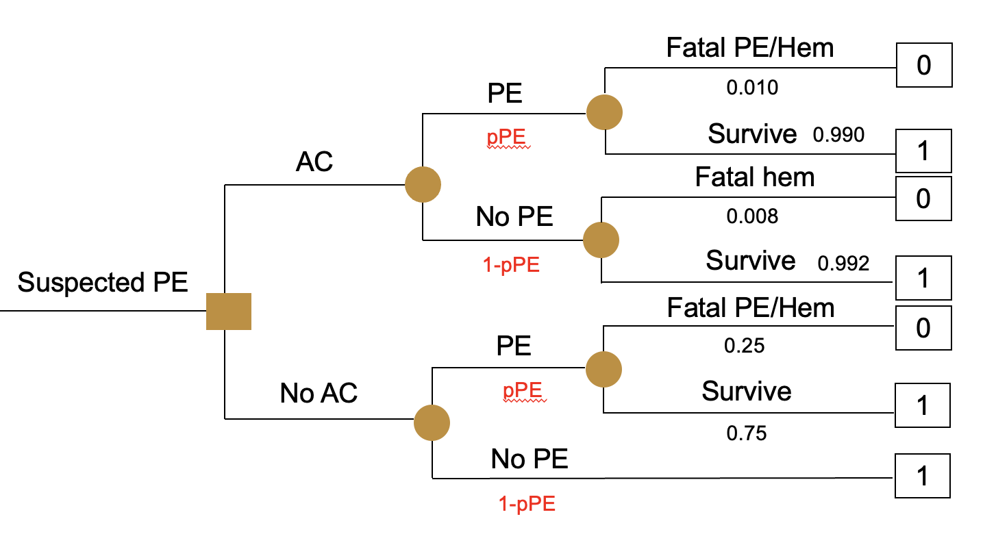 Valor esperado (No AC) = 0.750 * pPE + 1.0 * (1-pPE)