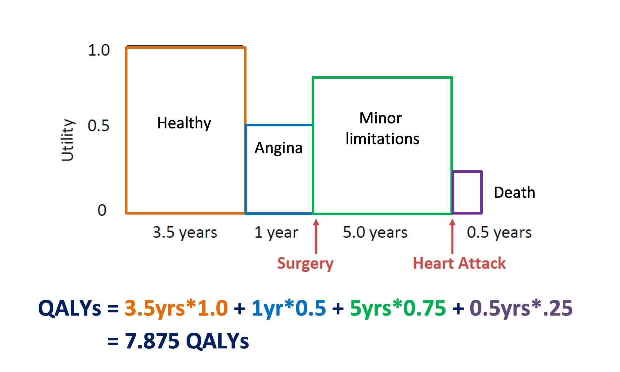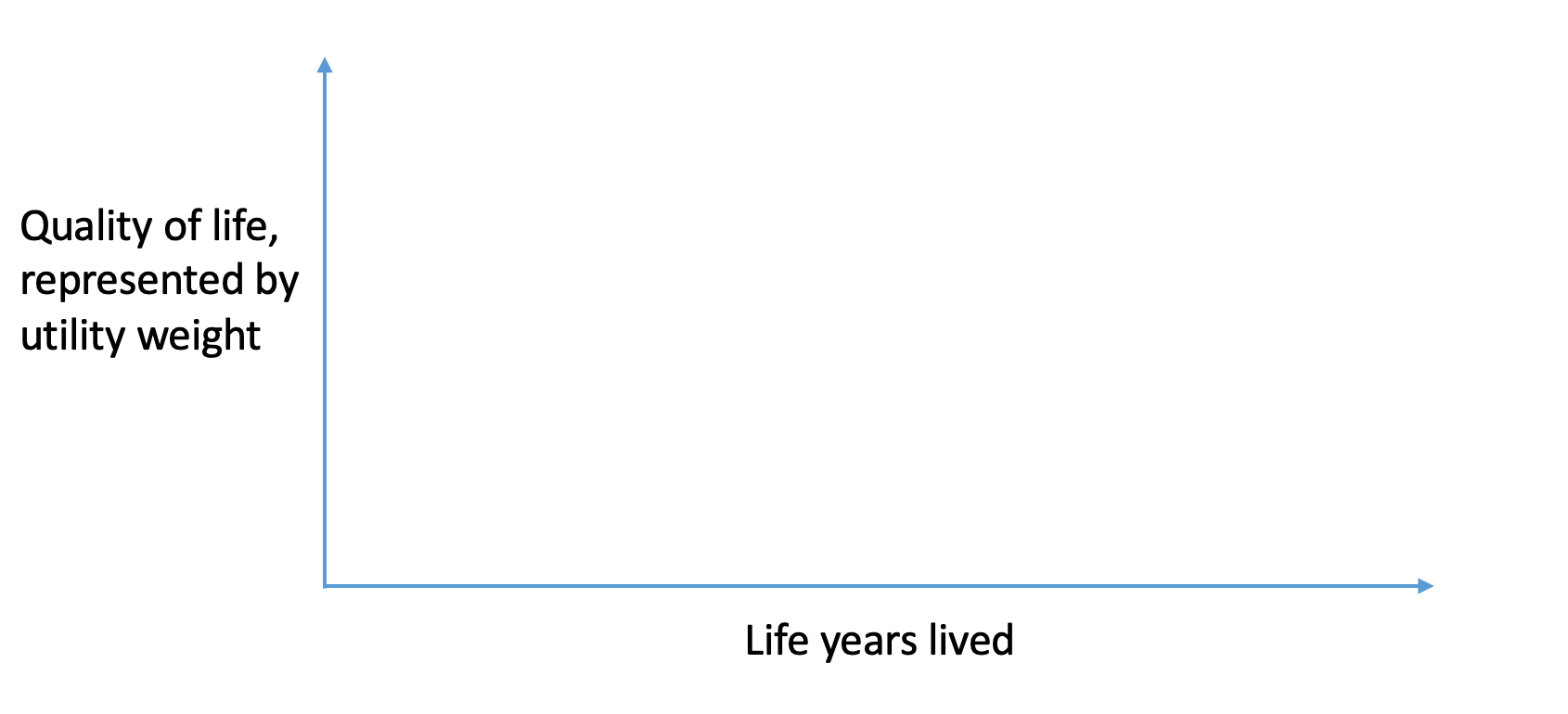 calidad de vida (medida por el peso de la utilidad, normalmente entre 0 y 1)