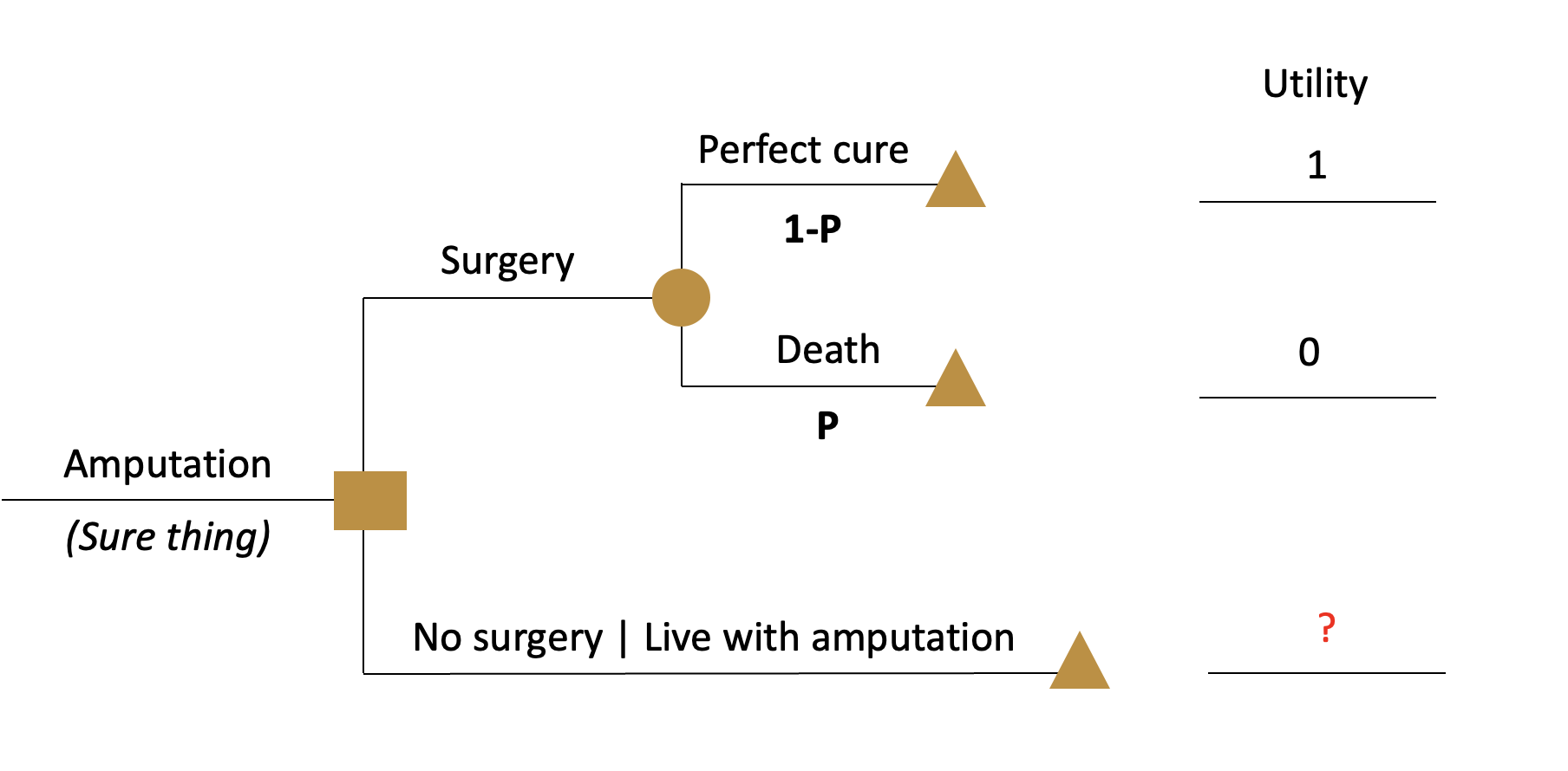“¿Qué riesgo de muerte aceptaría para evitar [vivir el resto de su vida con una pierna amputada] y vivir su vida en perfecto estado de salud?”