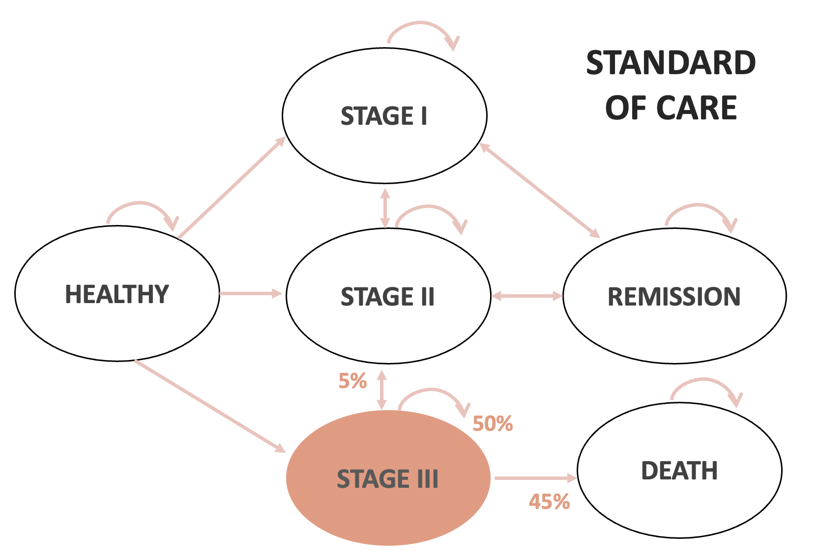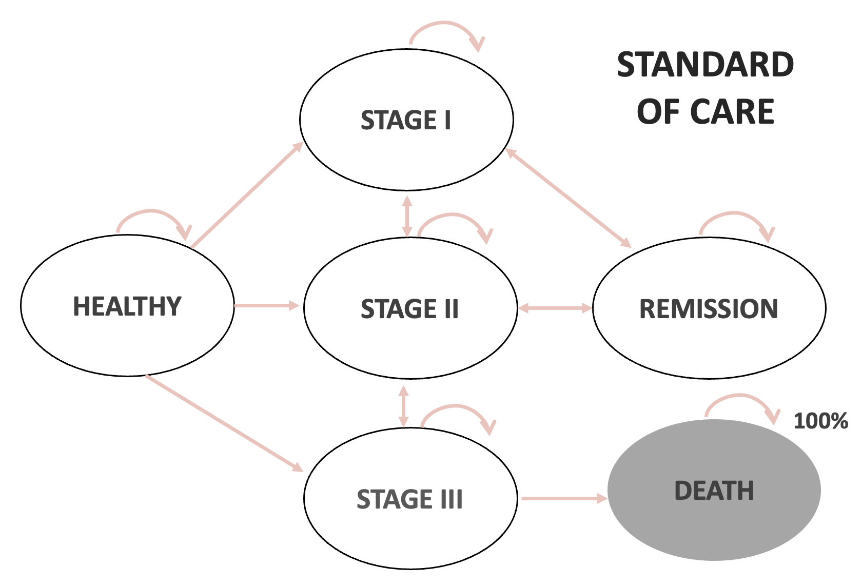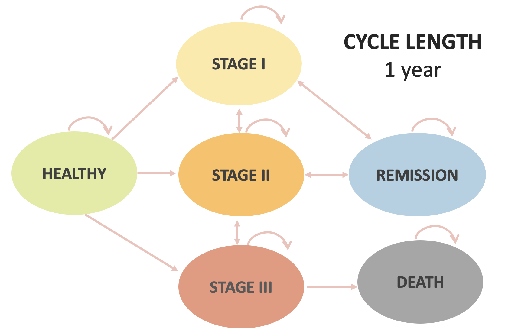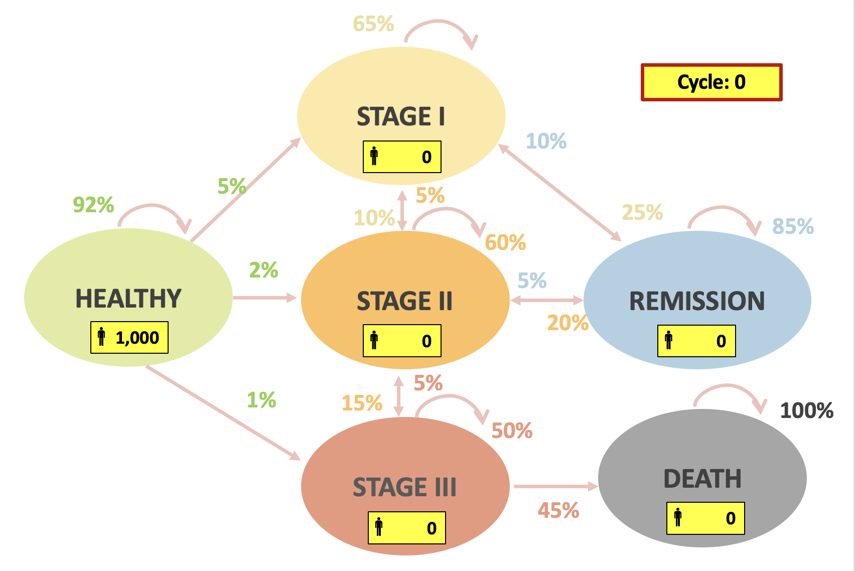 Como hay un número fijo de estados de enfermedad en los que puede encontrarse la población, no es necesario modelar vías complejas, como vimos en la “explosión” del árbol de decisión hace unas diapositivas.