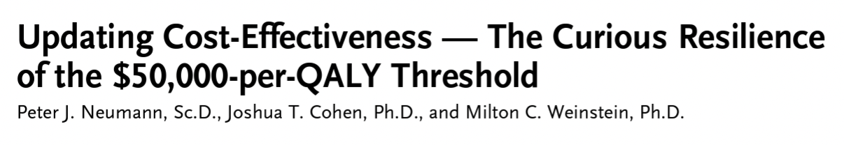 Academics have argued that the threshold should be lower/on the more conservative end for higher priced therapies (NICE uses a budget impact threshold of 20,000 GBP/QALY for these higher priced therapies as opposed to 30,000 GBP/QALY for others)