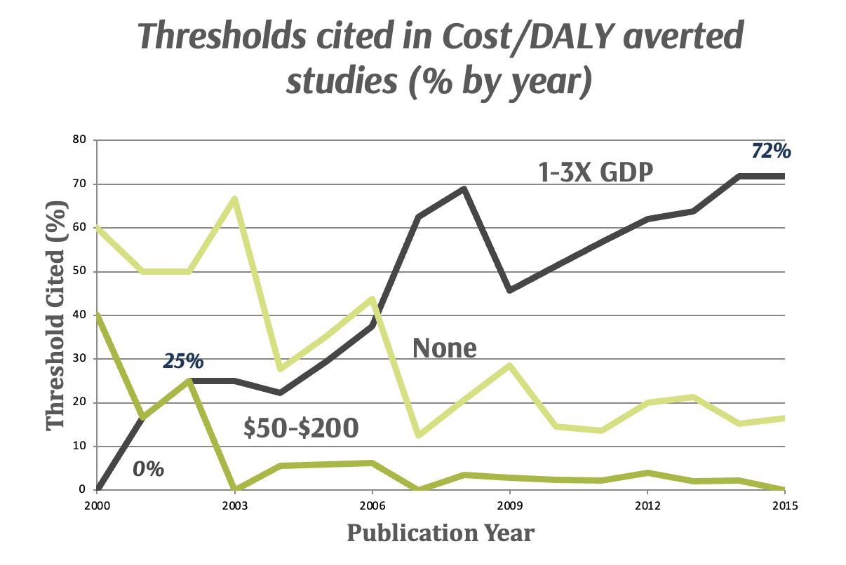 Source: See K Claxton on the estimation of the NICE threshold in the UK / Woods et al, & others