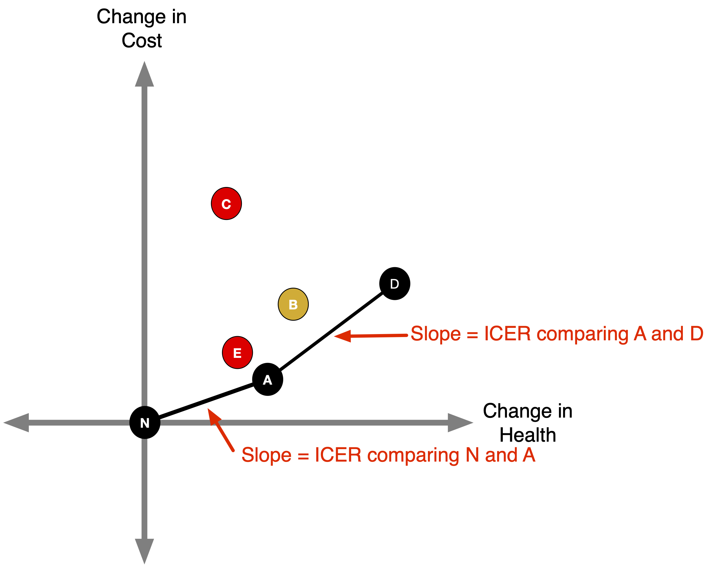 5. Re-calculate ICERs after eliminating dominated strategies.
