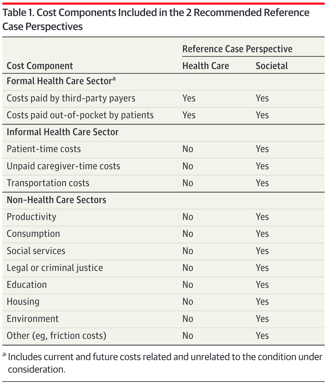 Societal perspective: Represents the wider “public interest” & inter-sectoral distribution of resources that are important to consider - reflects costs on all affected parties