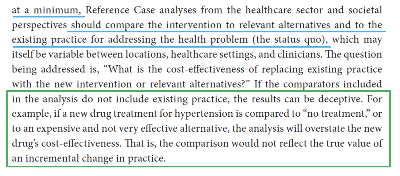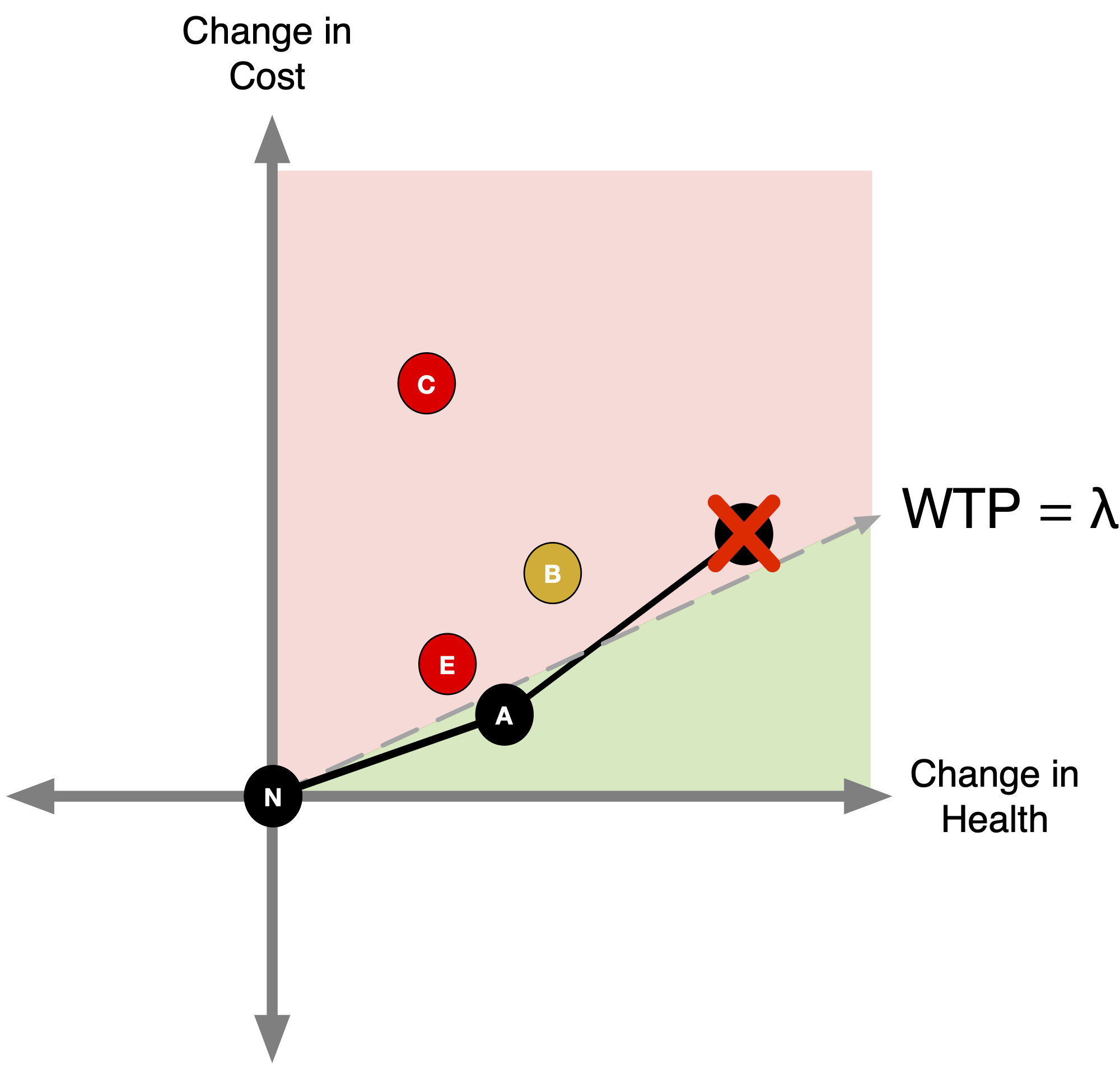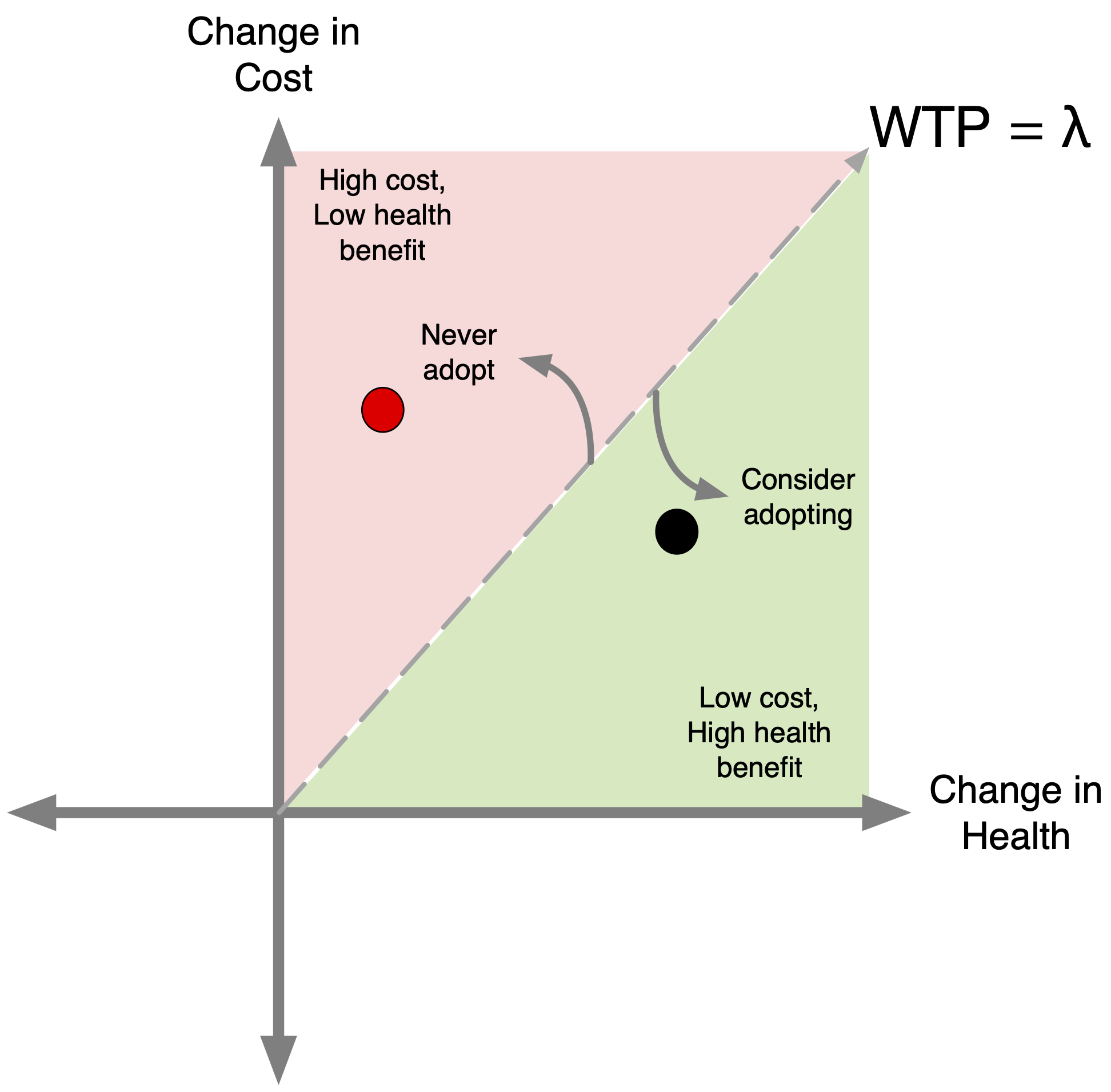 If you don’t consider the budget under which you are operating, then some medications could take up half the budget and displace interventions that produce significant health gain OR in the US, could increase premiums or take away $$ from other sectors
