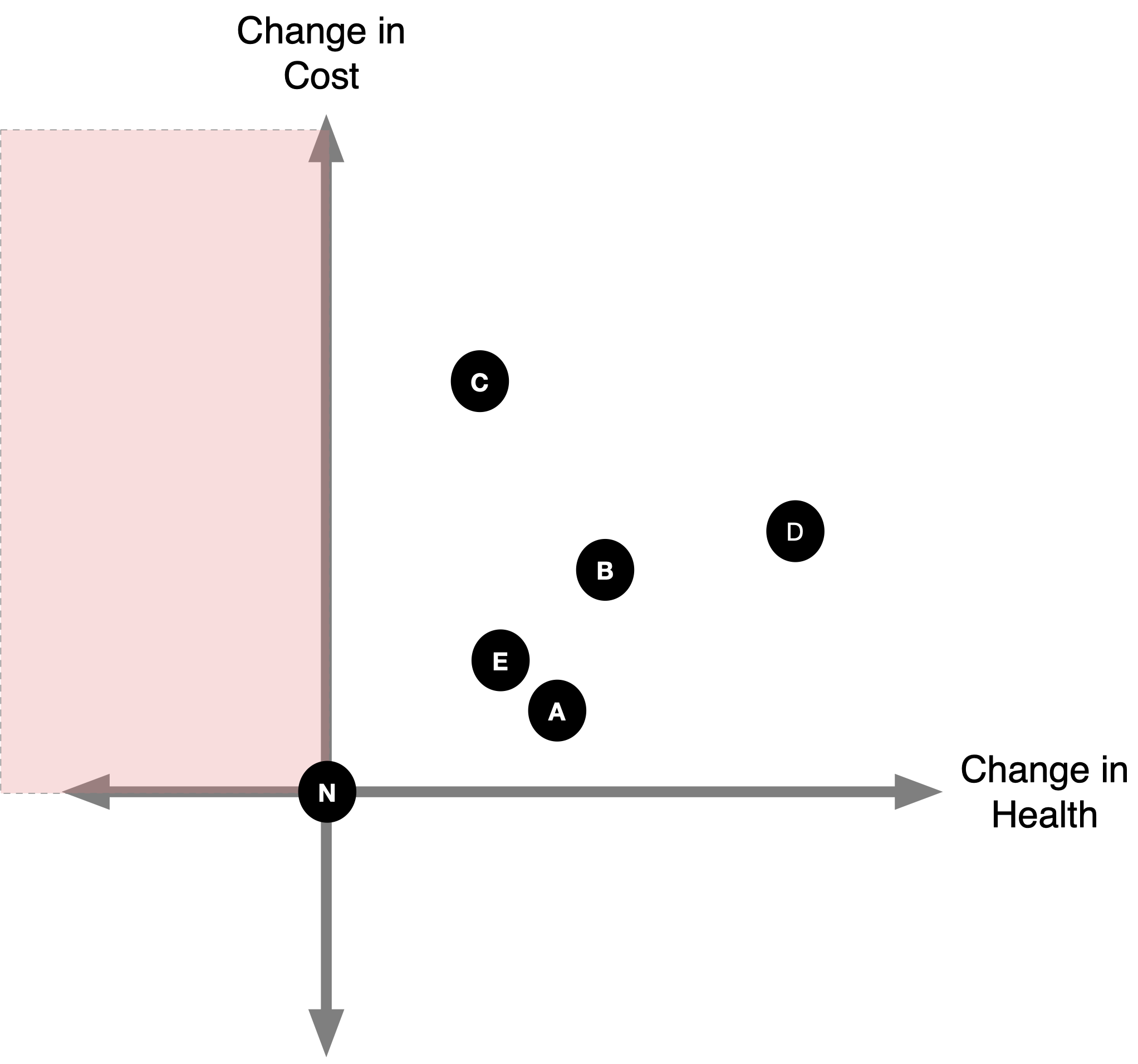 Steps 1 & 2: Rule out dominated options & select cost-saving interventions