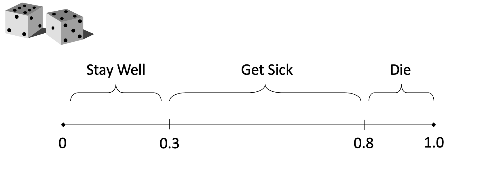 Hypothetical individuals transition through the model, one at a time