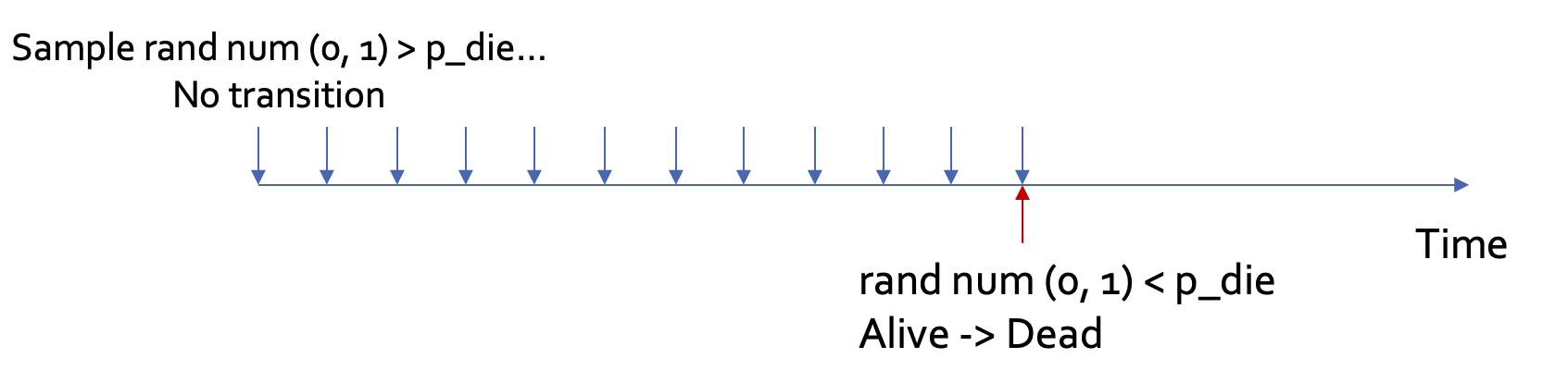 Those time steps may be useful even if there’s no event! (In the HIV/TB example, CD4 cell count is updated every cycle to recalculate TB and death risks)