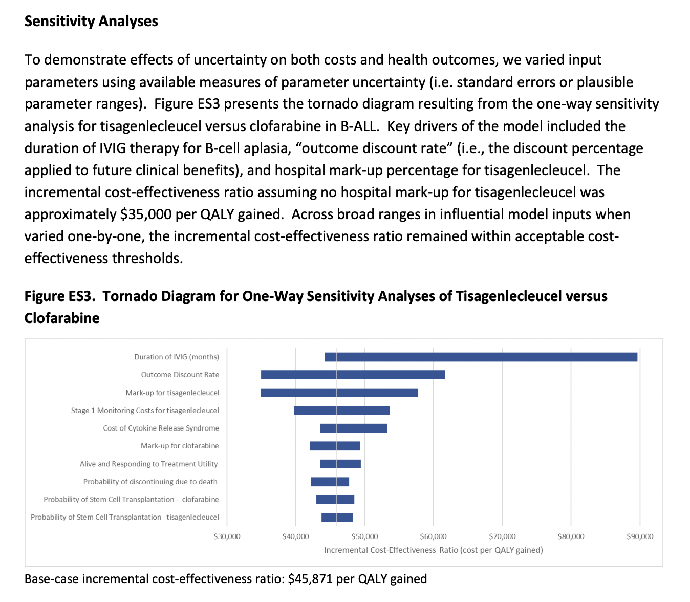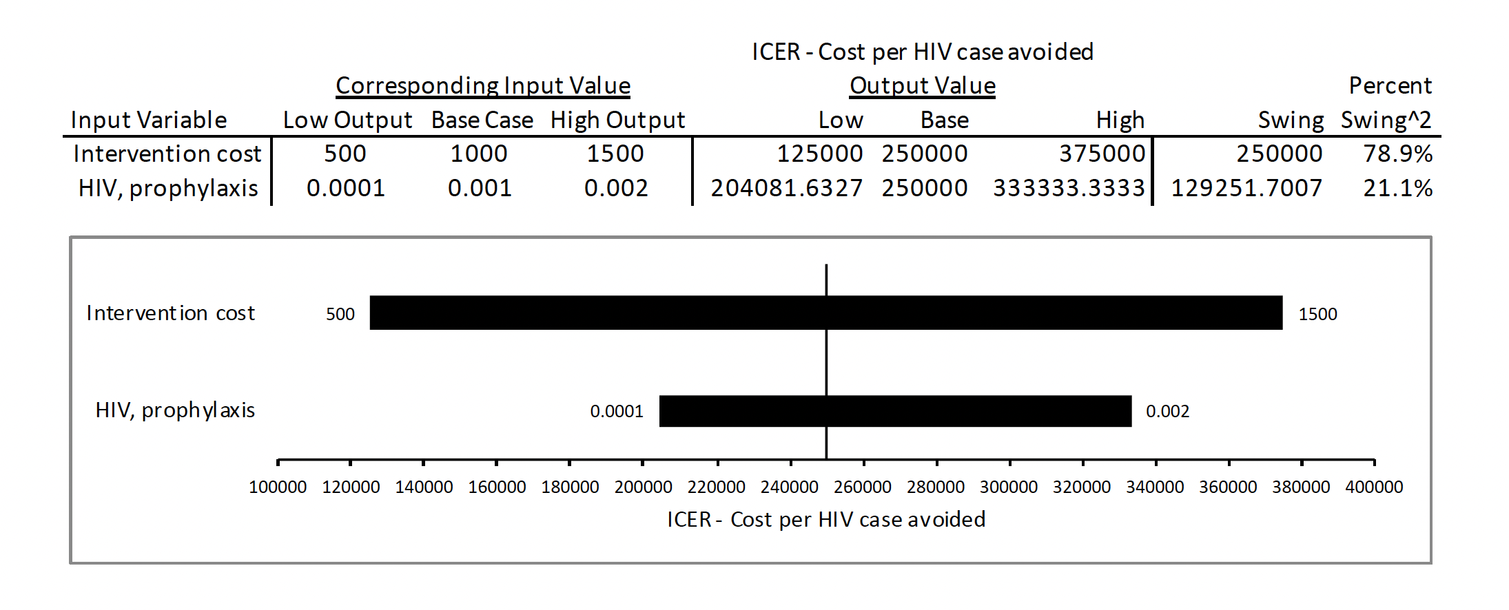 • One-way sensitivity analyses are often presented in a tornado diagram
