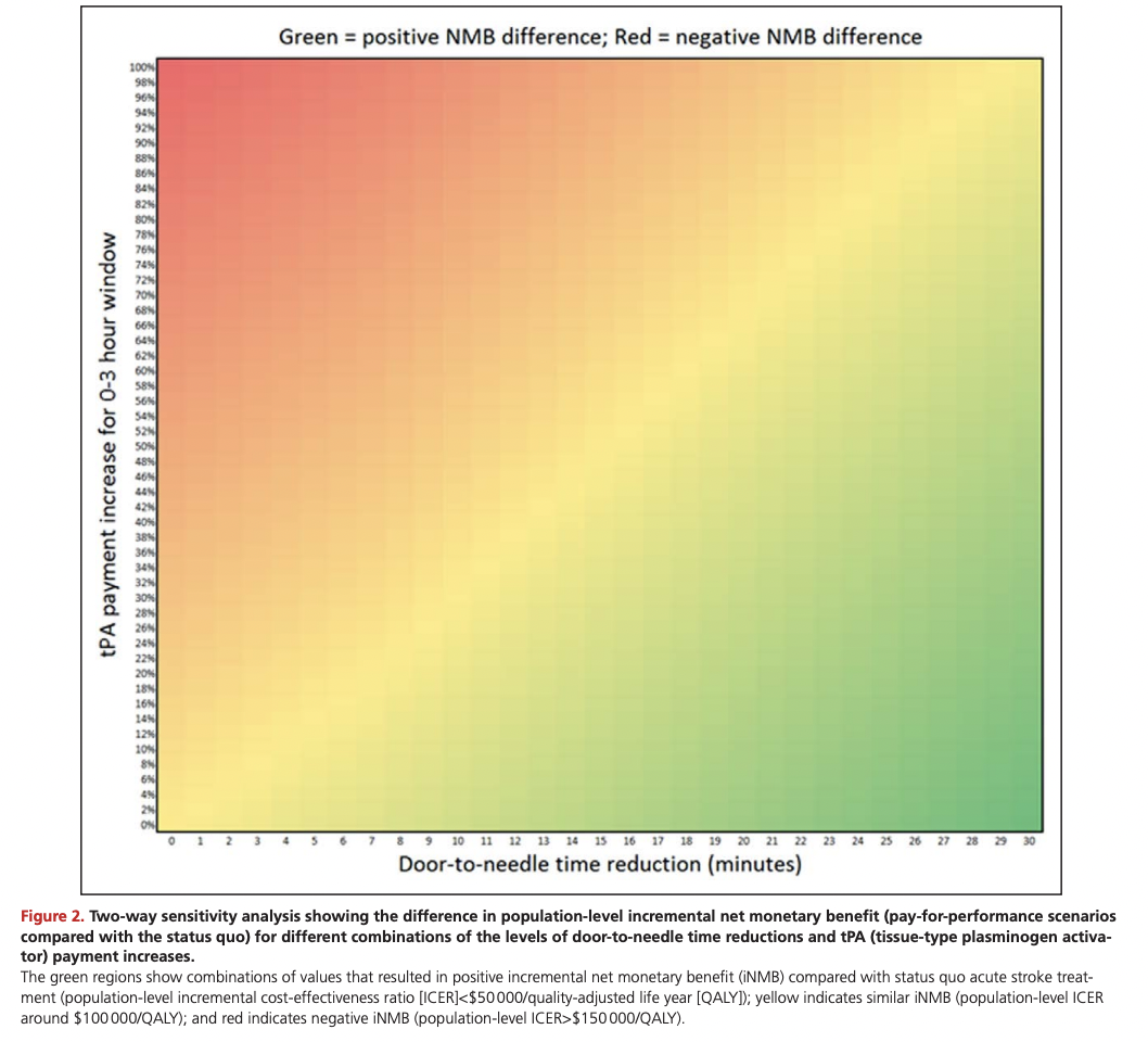 • Study objective: Illustrate how pay-for-performance incentives can be quantitatively bounded using cost-effectiveness modeling, through the application of reimbursement to hospitals for faster time-to-tPA for acute ischemic stroke