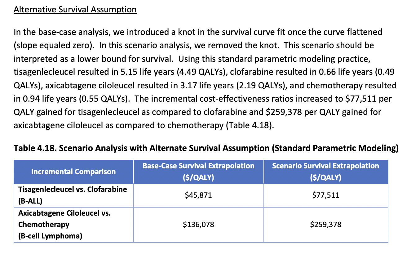 > Hypothetical scenarios (“optimistic” and “conservative” scenarios; for > example, if we have little evidence of long-term survival associated > with medication X, we might have an optimistic versus conservative > scenario)