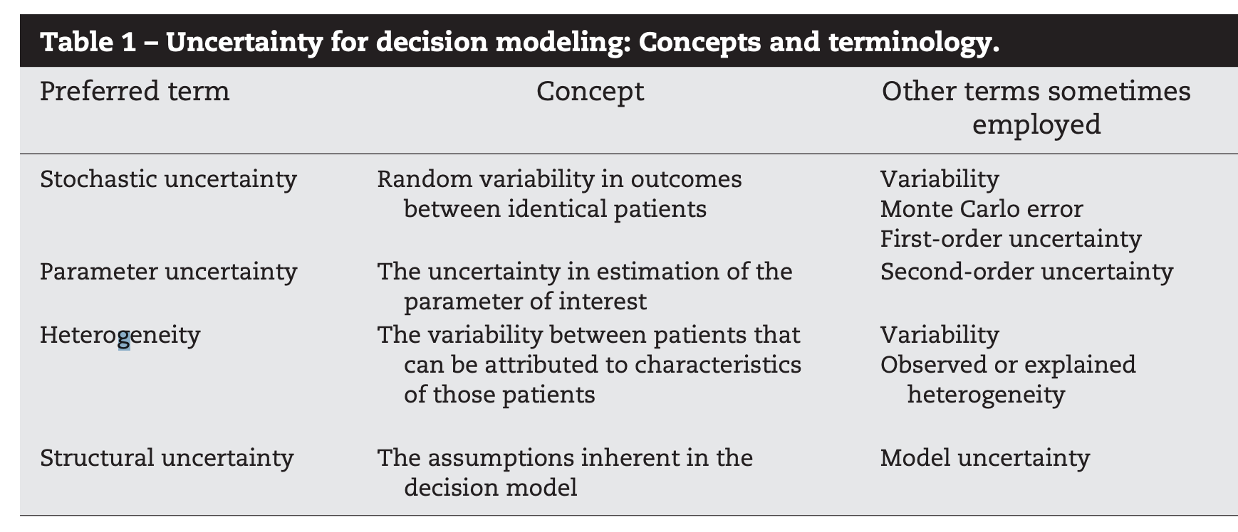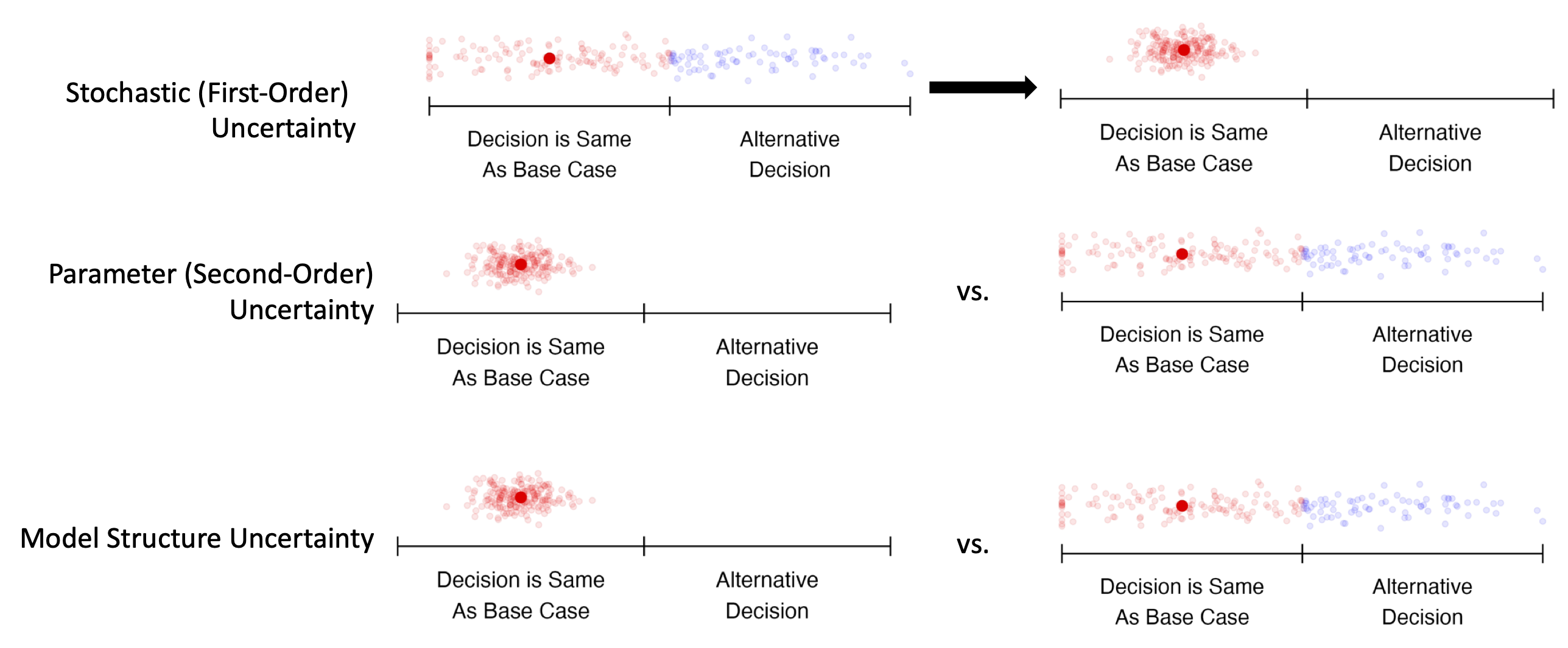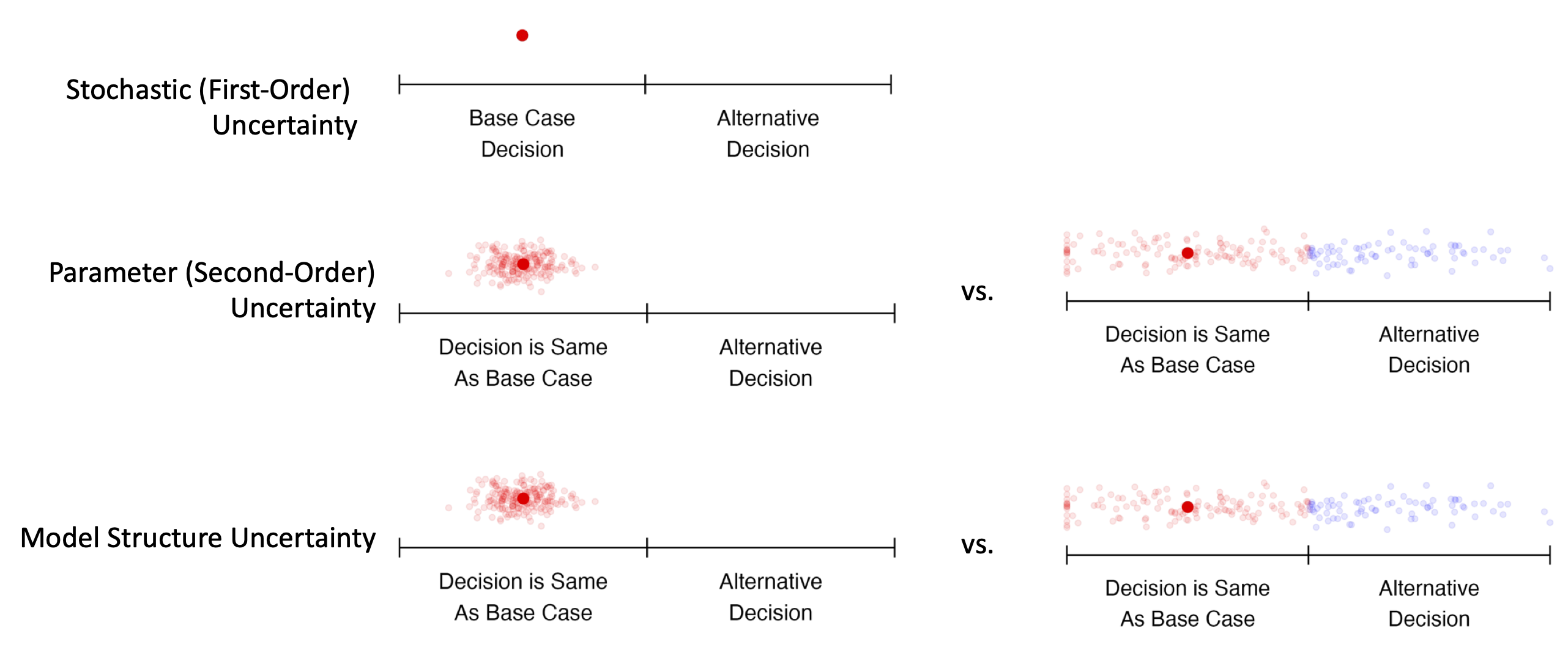Note that this picture represents common scenarios; uncertainty may be greater or lesser in any particular modeling context.