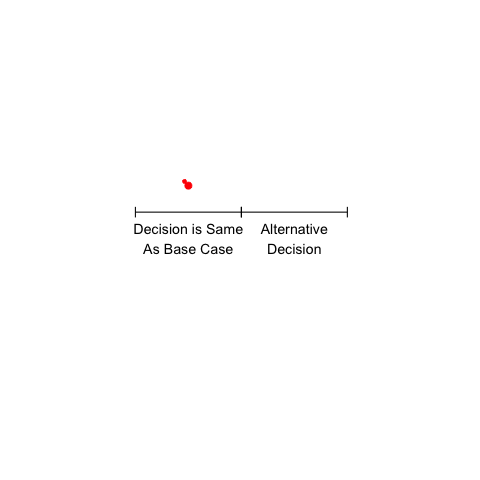 In this example, model outputs are sensitive to uncertainty, but decisions are not.