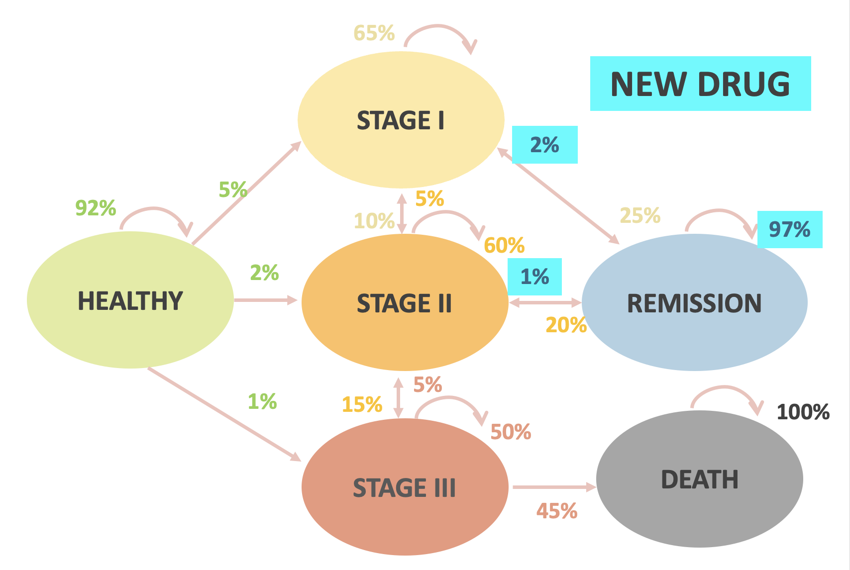 The advantages of Markov models derive from their structure around mutually exclusive disease states.