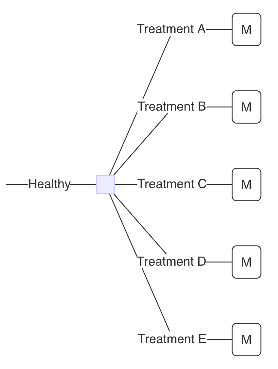 | c_trtB | 1000.00 | Cost of treatment B | gamma(shape = 12, scale = 83.3) | Assumption | ||