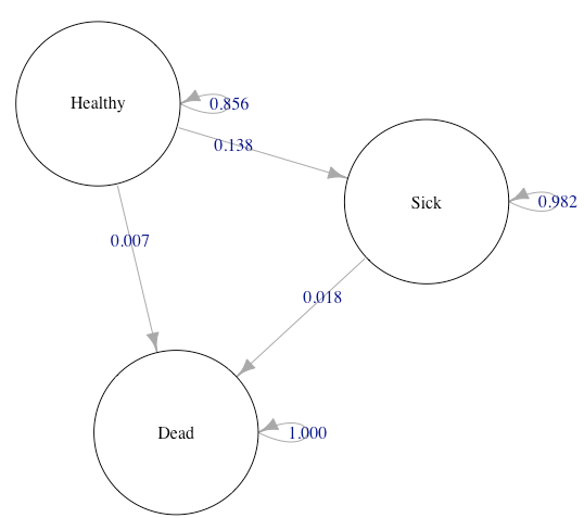 | Cycle | Healthy | Sick | Dead | LY (single cycle) |
